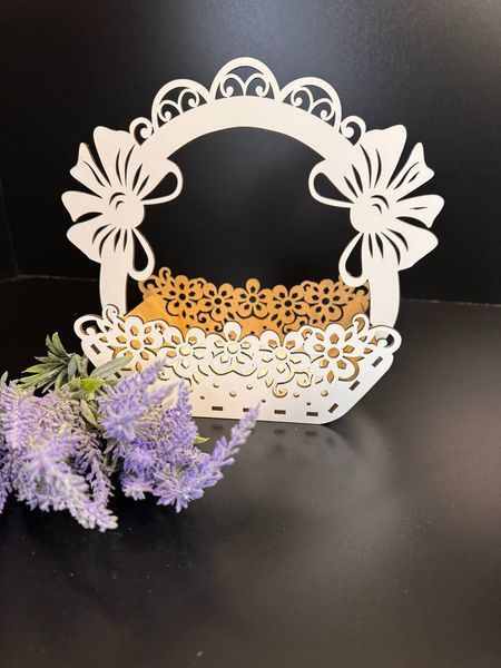 Корзина из белого МДФ для цветочной подарочной композиции. Также подходит на тематические праздники: Пасха, День Рождения, 8-март, 14 февраля и т.д.